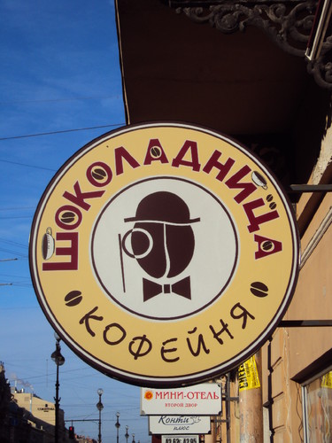 Apesar de S. Petersburgo ser um porto com acesso ao Báltico, através do Golfo da Finlândia, a Starbucks ainda (?) não desembarcou aqui mas há uma cadeia local de cafés, identificável através do logo da foto que abre este post, com características em tudo semelhantes.